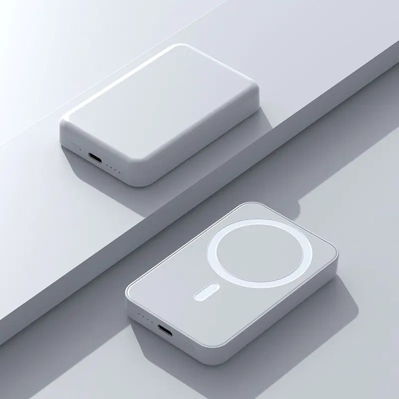 This sleek and simple power bank features magnetic suction for easy wireless charging on the go. Compact and stylish, it's perfect for fast, cable-free charging at home or while traveling.