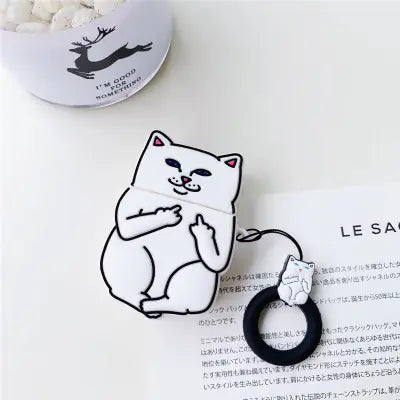 Middle Finger Cat Cartoon AirPods Case Cover